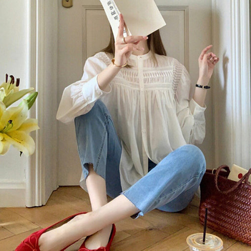 SAHINER 봄가을 여성 프릴넥 블라우스 긴팔셔츠 데일리 오피스룩 LBCS36