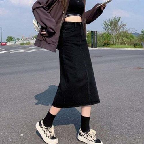 EAMT 여성용 스커트 롱 검정 가을 힙업 A라인 몸매 트임 정장 영상 배 EUNG3