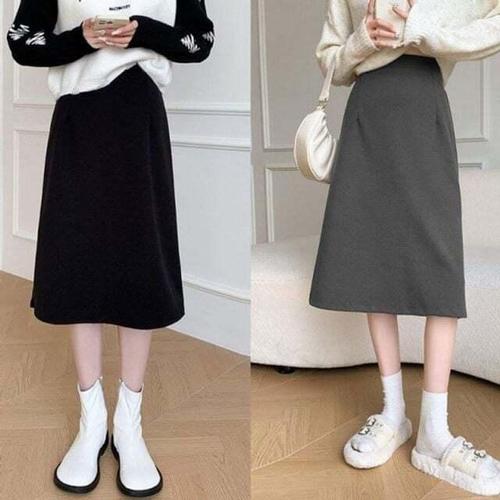 [셀럽하우스]모직 LPER0332 겨울 캐주얼 스커트 트임 필수템 미디 A라인 하