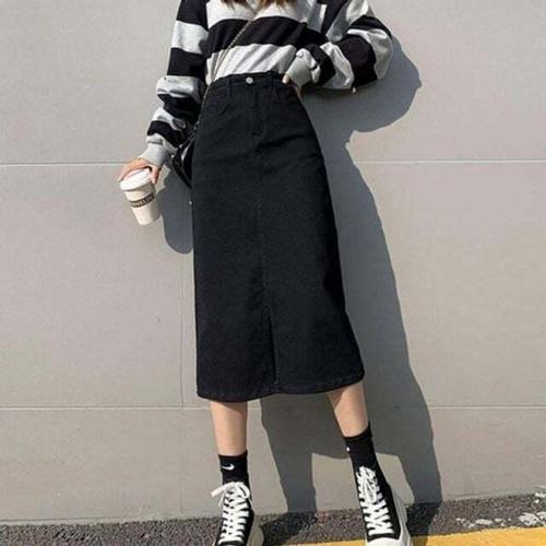 [셀럽하우스]워싱 VHOC3867 롱데님 데일리 A라인 앞트임스커트 청치마 패션
