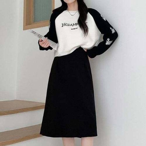 뉴욕멋쟁이 지아 배색 트임 밴딩 롱스커트
