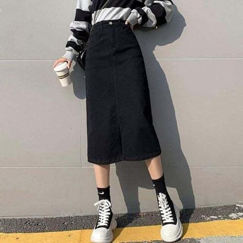 [셀럽하우스]A라인 HDVJ6197 앞트임 데일리 블랙 날씬 클래식 치마 스커트