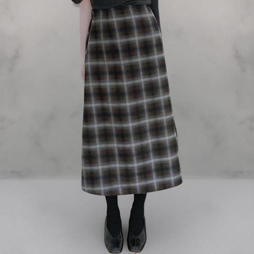 [옷자락] 여성 두툼 하이웨이스트 배색 체크 A라인 긴 치마