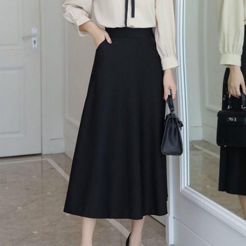 스커트 치마 여성 봄 A라인 올블랙 하이웨스트 하객 출근 정장 롱