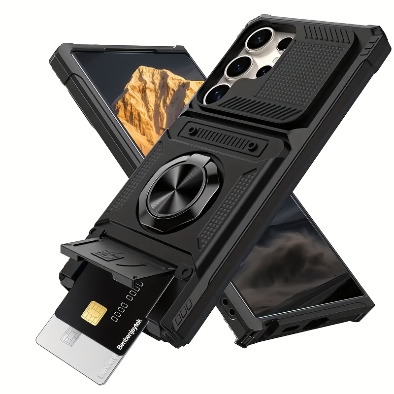 TEMU 삼성 갤럭시 S25 에지, S25, S24, S23 울트라 플러스 FE 시리즈와 호환되는 [롱지아] 숨겨진 듀얼 카드 슬롯 휴대폰 케이스는 또한 삼성 A56, A55, A36, A35, A26, A25, A16, A15, A14와 호환되며, 360° 회전 기능을 제공합니다.|폰케이스