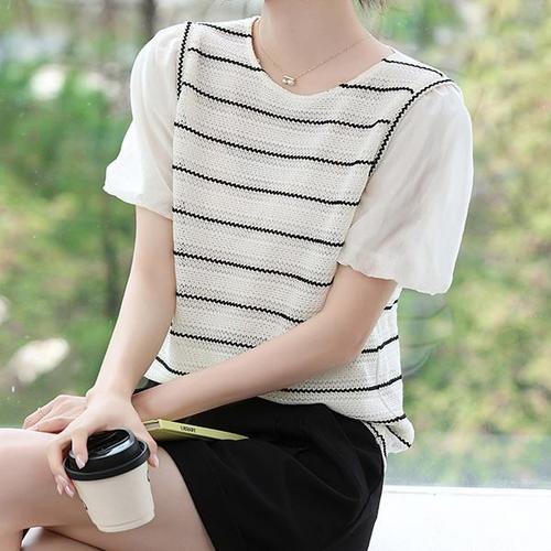 [패션시그널]스트라이프 퍼프소매 블라우스 281AED