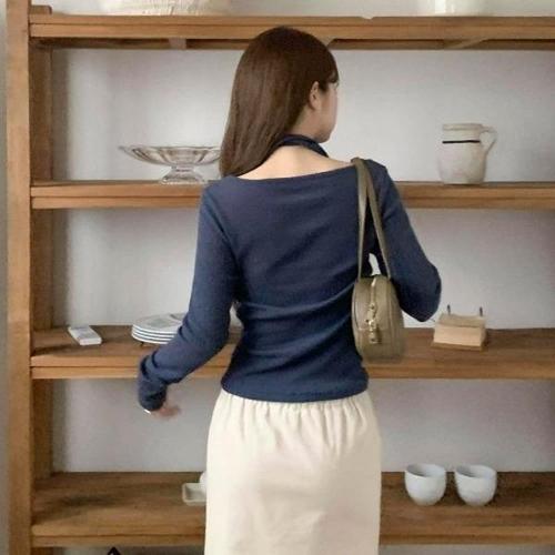 [신상오픈런]|KMT9AED|여성 골지스트랩 보트넥 긴팔니트_23330217_597559