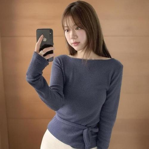 [신상오픈런]|KMT9AED|여성 립니트 스트랩 보트넥 스판 긴팔 스웨터_23359218_597559