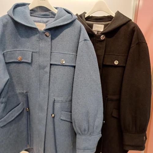Destijl HC06 겨울 짚업 팔뚝 편한 하프길이 울 아더스 후드 점퍼형 코트
