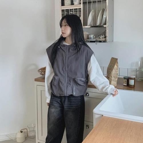 [다잇템][다잇템] 여자 더블포켓 박시핏 후디 캐쥬얼 윈드브레이커 조끼_23226652_588872