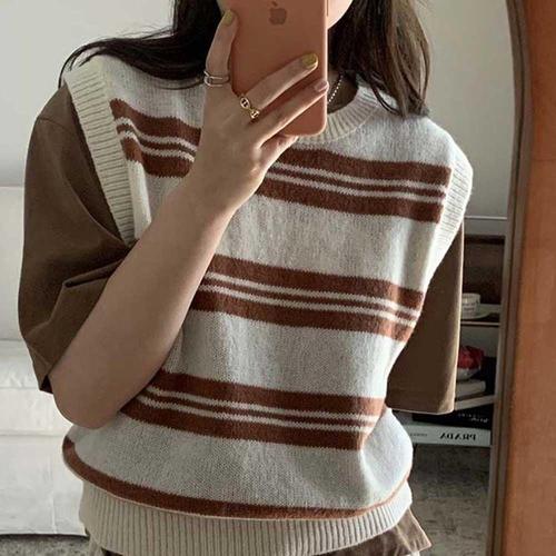 |KHJ4F52|일무네 스프링 뜨개 선 조끼 스웨터 여성 캠퍼스 배색
