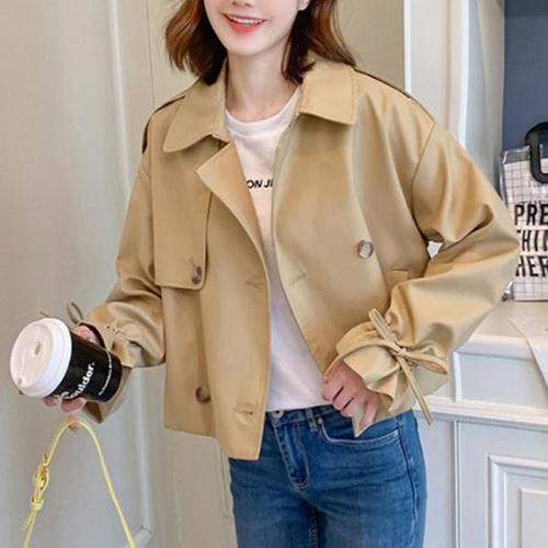 [오너클랜]인기상품 여성 크롭 트렌치 숏자켓 1P 소매 스트랩 간절기 재킷 [WE2EC5E_250918]