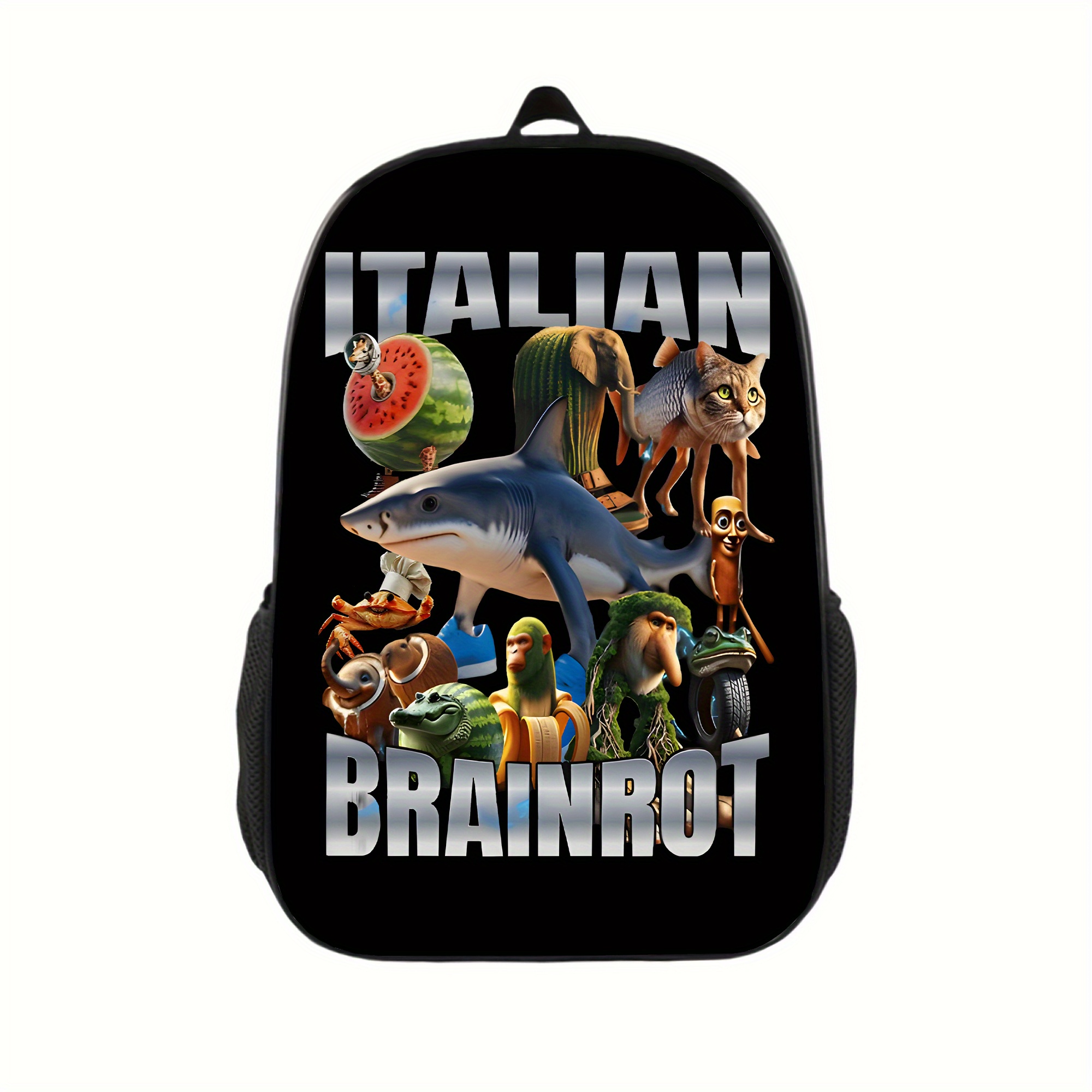 TEMU 이탈리아 뇌회로 프린트 커뮤터 백팩 - 스타일리시한 블랙 에르고닉 디컴프레션 숄더 스트랩, 노트북 컴파트먼트, 조절 가능한 스트랩 및 지퍼 클로저, 일상적인 통근 및 여행을 위한 여행용 백팩, 생동감 있는 프린트, 폴리에스터 안감, 청소년용