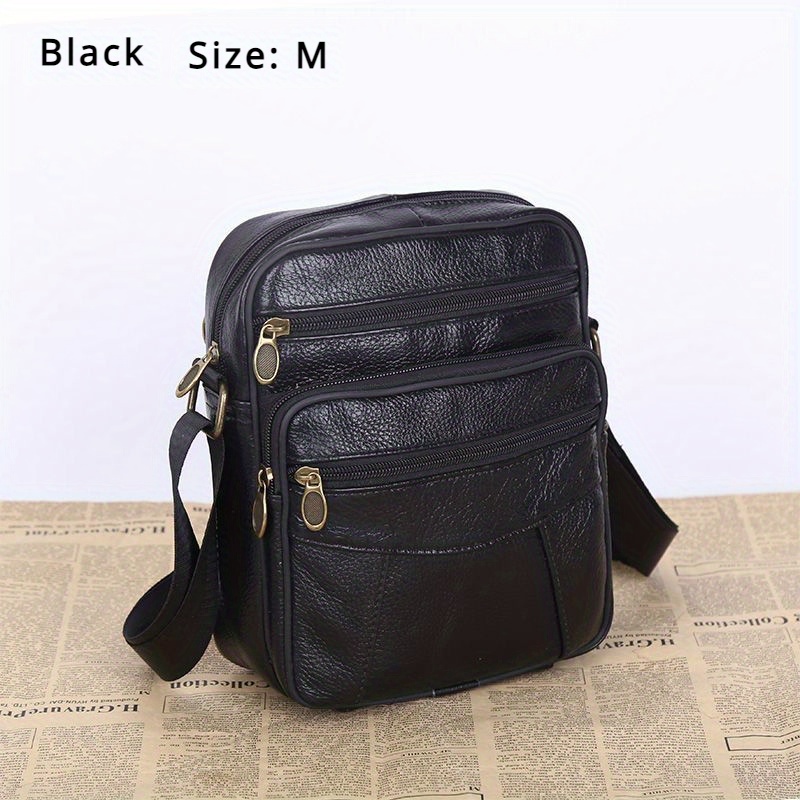 TEMU 남성용 정품 가죽 숄더백 - 대용량 비즈니스 캐주얼 크로스바디, 다용도 수납공간, 상단 레이어 소가죽, 블랙, 골든톤 지퍼, 스타일리시하고 기능적인 일상용 크로스바디 백