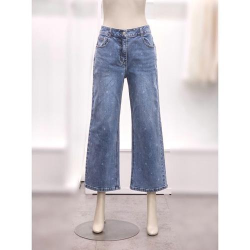 자카드 패턴 데님 바지 남성 스트레이트 피팅 헐렁한 바닥 남성용 디스트레스드 와이드 청바지