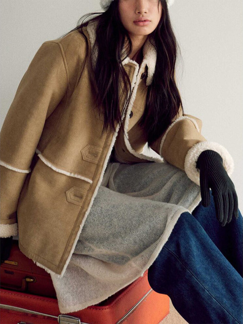 [구호플러스] Signature Shearling Faux Suede Midi JacketBeige (KE5X3VM03A)