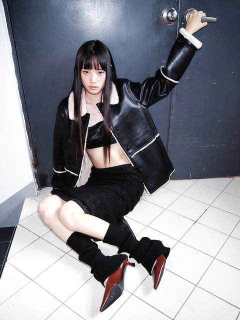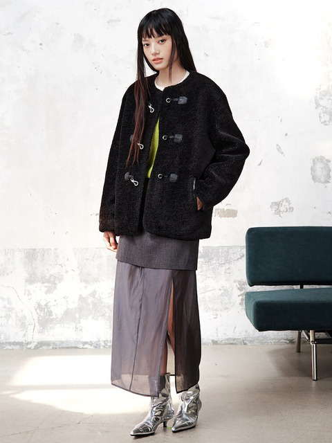 [구호플러스] Signature Shearling Faux Leather Midi JacketBlack (KE5X3VM035)