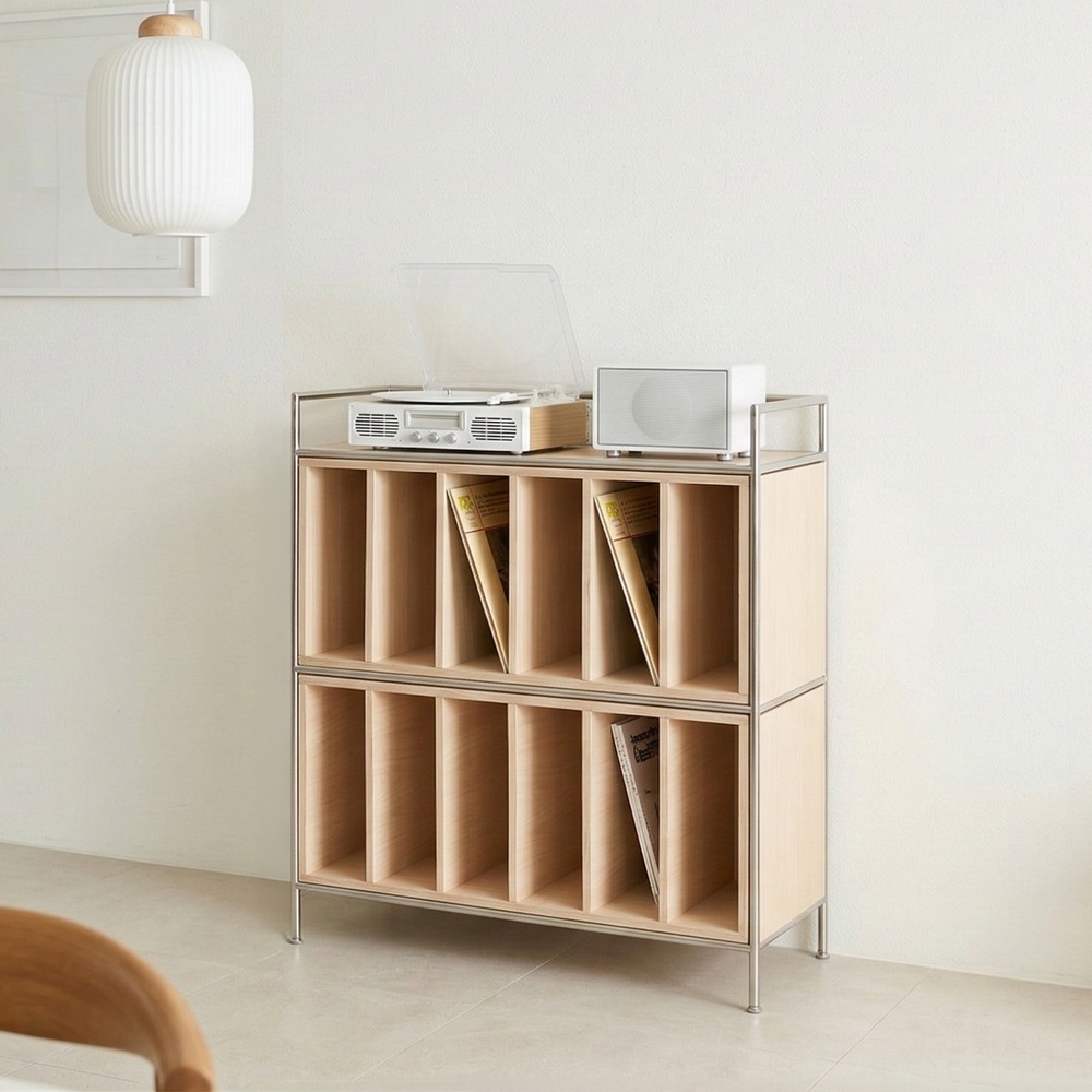 벨로르 미드 센츄리 모듈 2단 6칸 폭 좁은 LP 수납 책장 800
