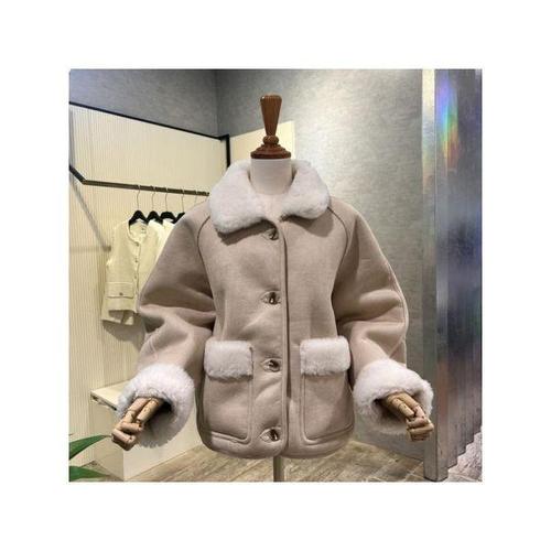 TEMU 마일라드 반응 빈티지 루즈핏 브라운 긴소매 안티벨벳 포켓 여성용 자켓, 봄/가을 출퇴근용