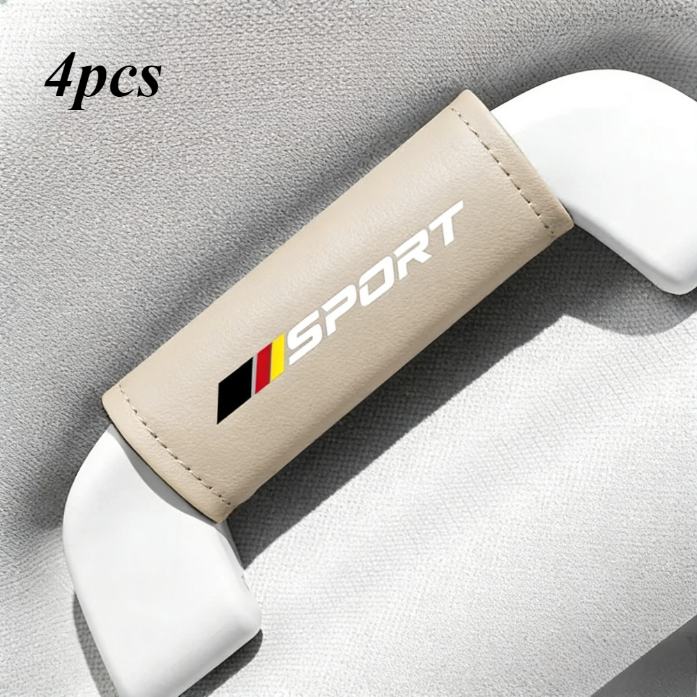 TEMU 4개 세트 나파 PU 가죽 자동차 내부 액세서리, 스포티 스타일 루프 핸들 장식 커버, 자동차 천장 핸들 보호 커버, 스타일리시 자동차 암레스트 커버