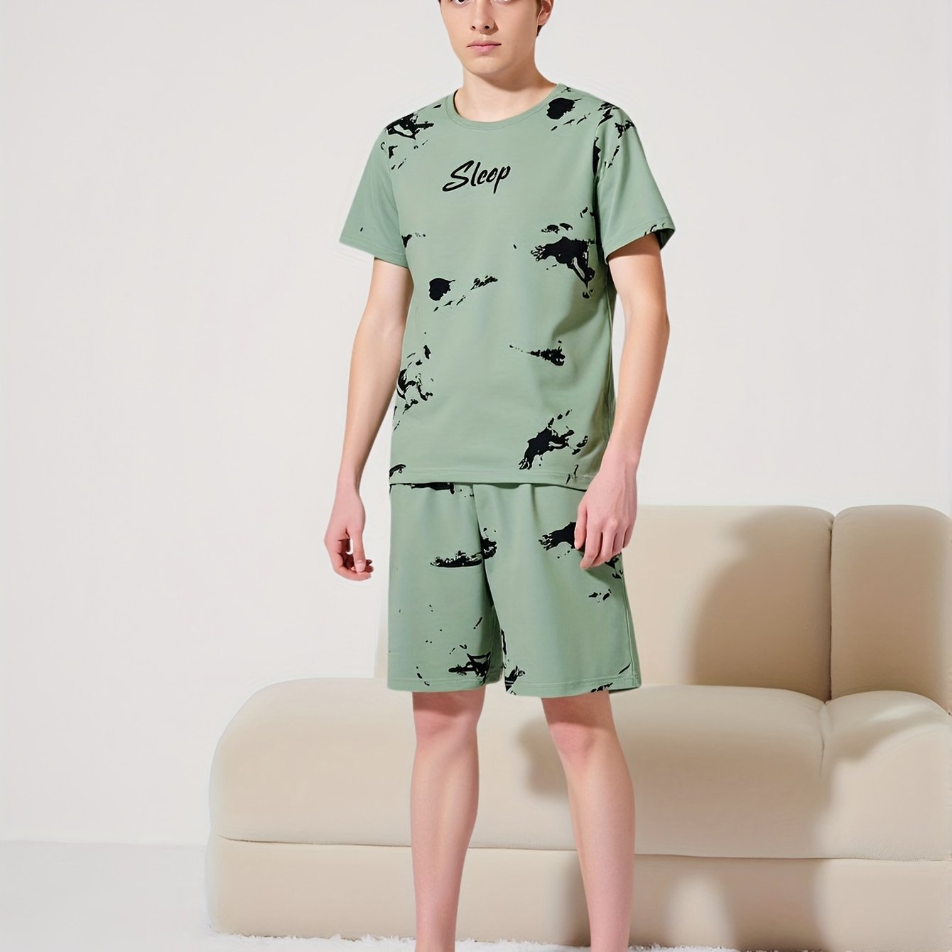 TEMU 소년용 25개 봄/여름 신상 민트 그린 타이다이 캐주얼 반팔 상의 + 반바지 라운지웨어 세트, 소년용 루즈 오버사이즈 라운드넥 다용도 패션 라운지웨어 세트, 소년용 INS 스포티 라운지웨어 세트, 청소년용