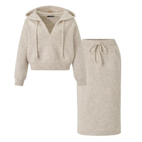정상가:139,000원 ㅣ 브이넥 후드 니트 롱 스커트 셋업 (XP4OW008L0)