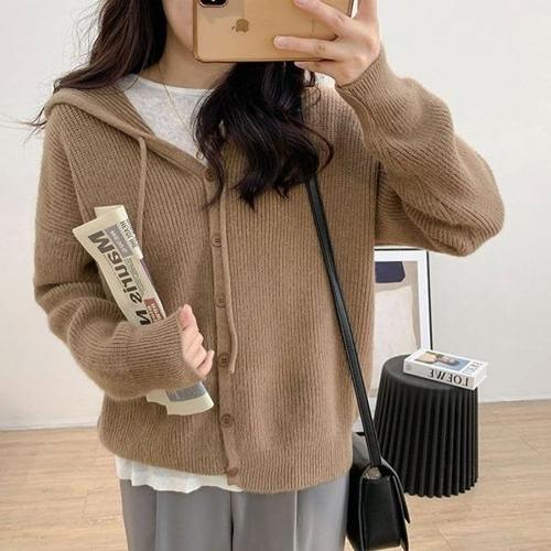 [엄지척]후드 니트 간절기 카디건 브이넥 루즈핏_19791066_667501