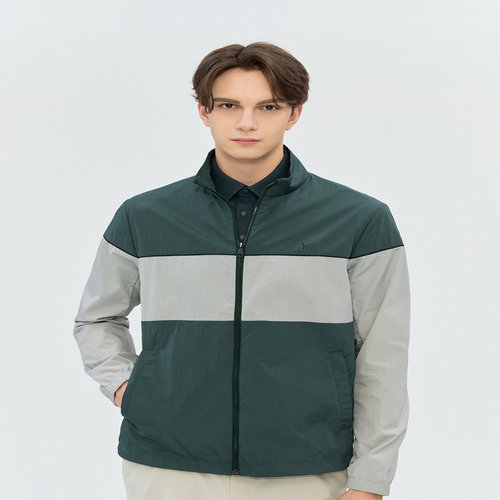 헤지스 골프 [ONLINE EXCLUSIVE] 그린 남성 컬러배색 로고 포인트 점퍼 (HUJU6B901E3)