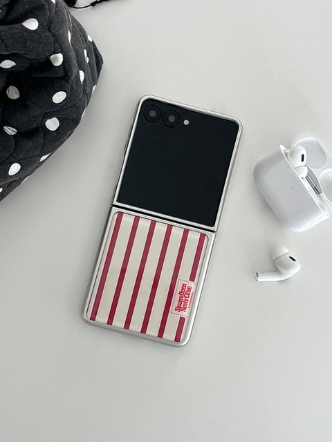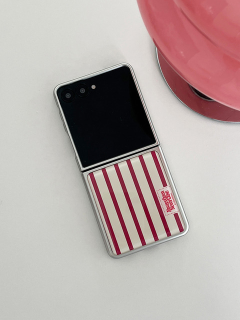 [더나인몰] 베이직 스트라이프 라벨 Z플립 실버 에폭시 범퍼케이스