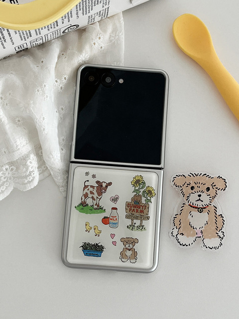 [더나인몰] gummys farm drawing pattern Z플립 실버 에폭시 범퍼케이스