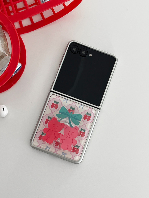 [더나인몰] cherry gummy checkerboard Z플립 실버 에폭시 범퍼케이스