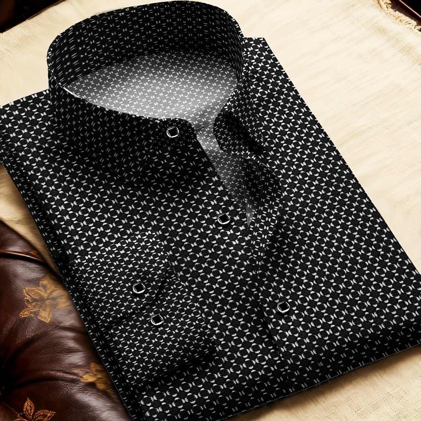 TEMU 2025년 남성 셔츠 추천, 신중하게 제작. 스타일리시한 플로럴 패치워크 포멀 셔츠로 봄/가을 오피스룩에 적합하며 빈티지 스타일을 연상시킵니다. 긴소매, 버튼 클로저가 포함되어 있습니다.|셔츠