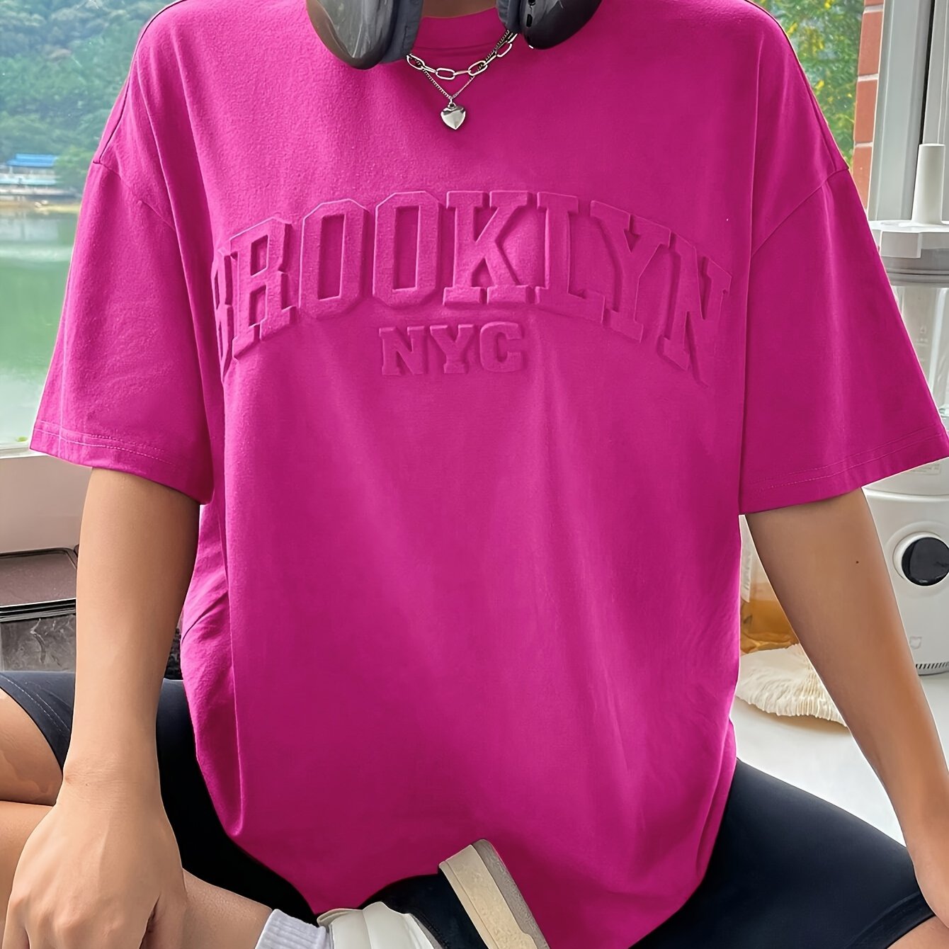 TEMU 유럽 및 미국 패션 트렌드 라운드넥 3D 레터 탑
