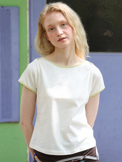 [포에브] 콘트라스트 보트넥 티셔츠 - 크림