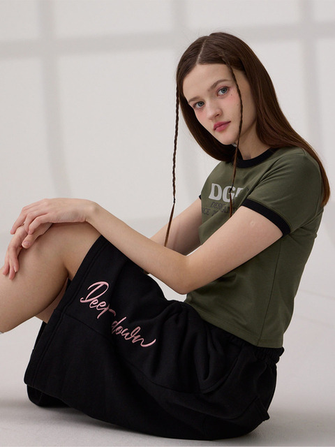 [댕글드랍] DGDP 사이드 레터링 스웨트 버뮤다 팬츠 블랙