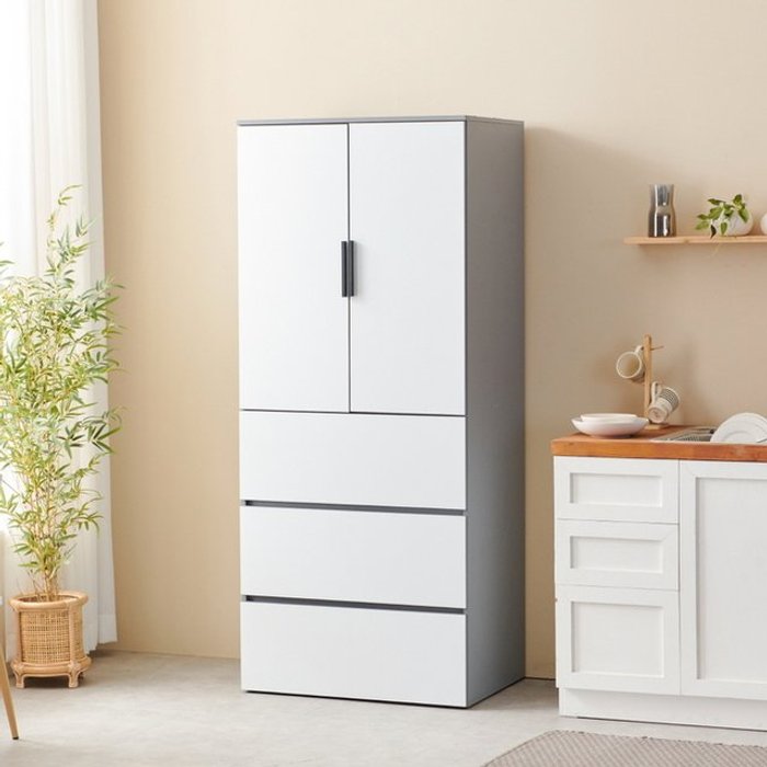 인터데코 냉장고스타일 주방수납장 그릇장 80cm P0000BBW