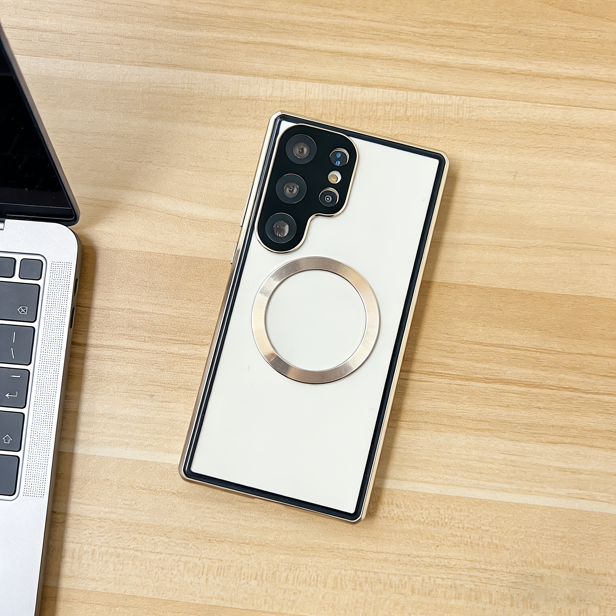 TEMU 휴대폰 케이스 - 이 세련되고 패셔너블한 투톤 마그네틱 S25 울트라 메탈 투명 폰 케이스는 S25, S24, S23, S22 울트라 플러스 및 S24FE와 호환됩니다. 렌즈 프레임은 스탠드로 사용할 수 있으며 무선 충전을 지원합니다.