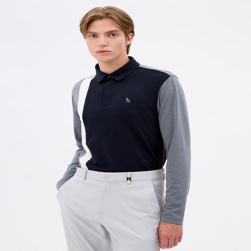 [헤지스골프](클리어런스) 리니어 블럭 긴팔 폴로티셔츠(BLACK) (HPTS4C922BK)