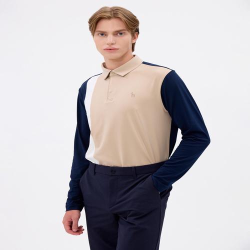 [헤지스골프](클리어런스) 리니어 블럭 긴팔 폴로티셔츠(BEIGE) (HPTS4C922I2)