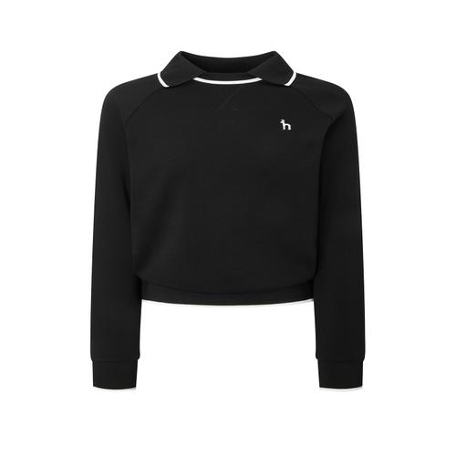 헤지스 골프 여성 [ONLINE EXCLUSIVE] 블랙 여성 빅카라 하프집 맨투맨 (세미오버핏) (HWTS4C922BK)