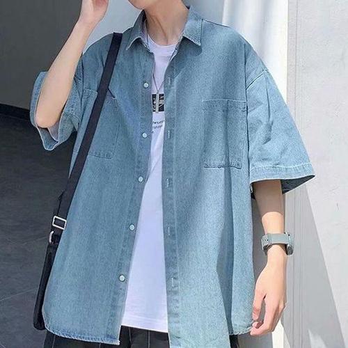 [에이치플러스몰]남자 연청 반팔 셔츠 여름 캠퍼스 패션 청셔츠 청남방