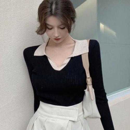 TEMU 여성용 반팔 레이어링 티셔츠 - 세미 하이넥 슬림핏 블라우스, 중간 신축성 단색 상의, 봄/가을용, 캐주얼 및 사무복 아님 (손세탁 가능) - 기본적인 복장용