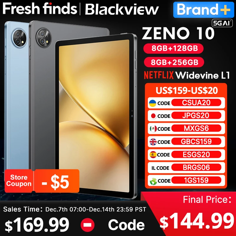 【세계 최초 공개】블랙뷰 제노 10 5G AI 태블릿 11인치 FHD+ 90Hz 디스플레이 와이드바인 L1 쿼드 스피커 8800mAh 안드로이드 15 패드 PC