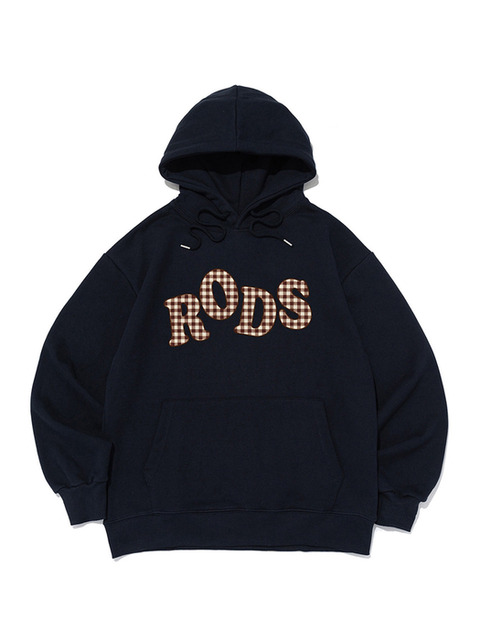 [로아드로아] [기모/NO기모] RODS 빅 로고 체크 후드티 (네이비)