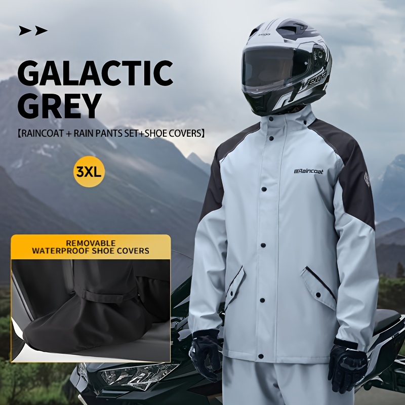 TEMU 라이딩 수트 분리형 우비 세트, 재킷 + 바지 + 신발 커버, 3종 세트, 가을/겨울 야외 통근 및 라이딩, 등산 및 빗속 작업용, 긁힘 방지 및 내마모성, 반사 뒷면 디자인, 통기성 안감 및 메쉬 차단막, 손세탁 가능한 남성용 라이딩 망토, 겨울용으로 한 사이즈 크게 선택 권장