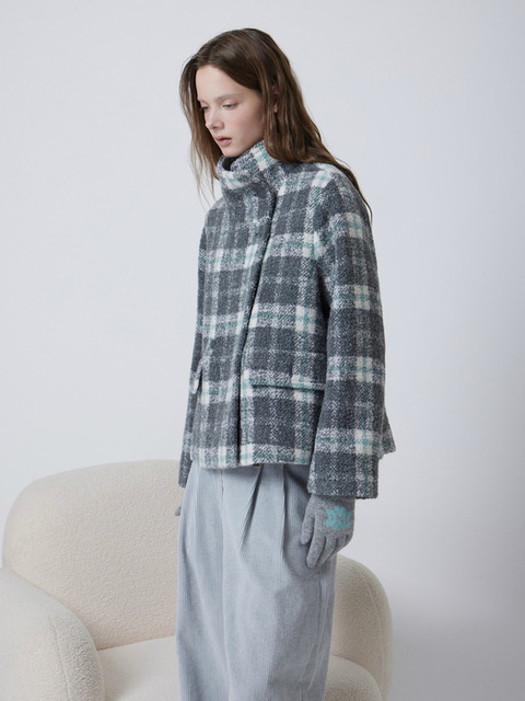 [듀엘] 하이넥 체크 코트 GR_D254MSG346