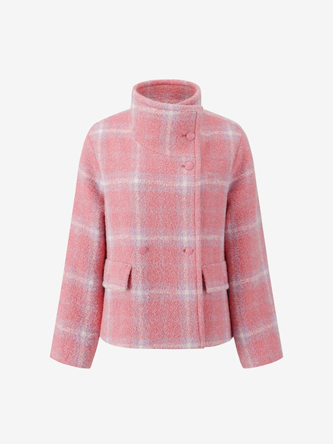 [듀엘] 하이넥 체크 코트 PK_D254MSG346