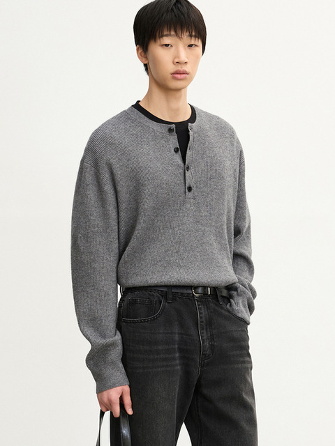 [티엔지티] 오버사이즈 리브드 헨리넥 니트 [그레이] TNSW5F109G2