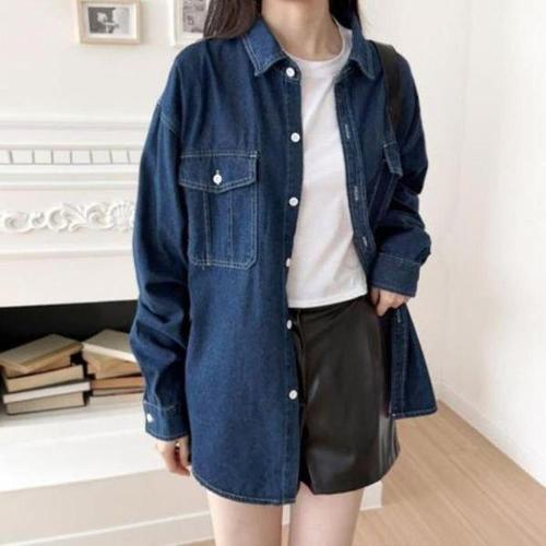 [다잇템_패션]여성 진 키치무드 더블포켓 빅사이즈 셔츠