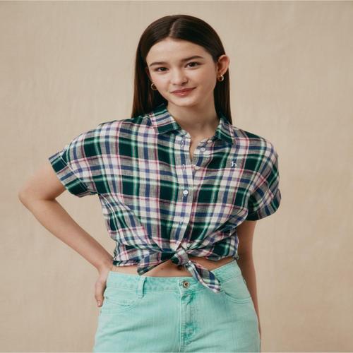 헤지스 여성 린넨 반소매체크 다크그린 (HSSH5B409E3)